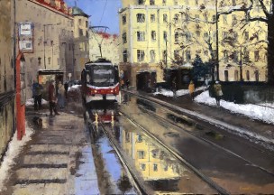 Tramvajová zastávka/ Tram stop 2022 (80 x 80 cm) – video on YouTube
