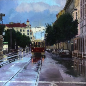 Po bouřce v Karlíně 2020 (40 x 40 cm) – tento obraz se 1.9.2020 vydražil na Žofíně v charitativní aukci pro Klub přátel dětí DD “97” za krásných 45 000 Kč. Jsem ráda, že pomůže dobré věci.