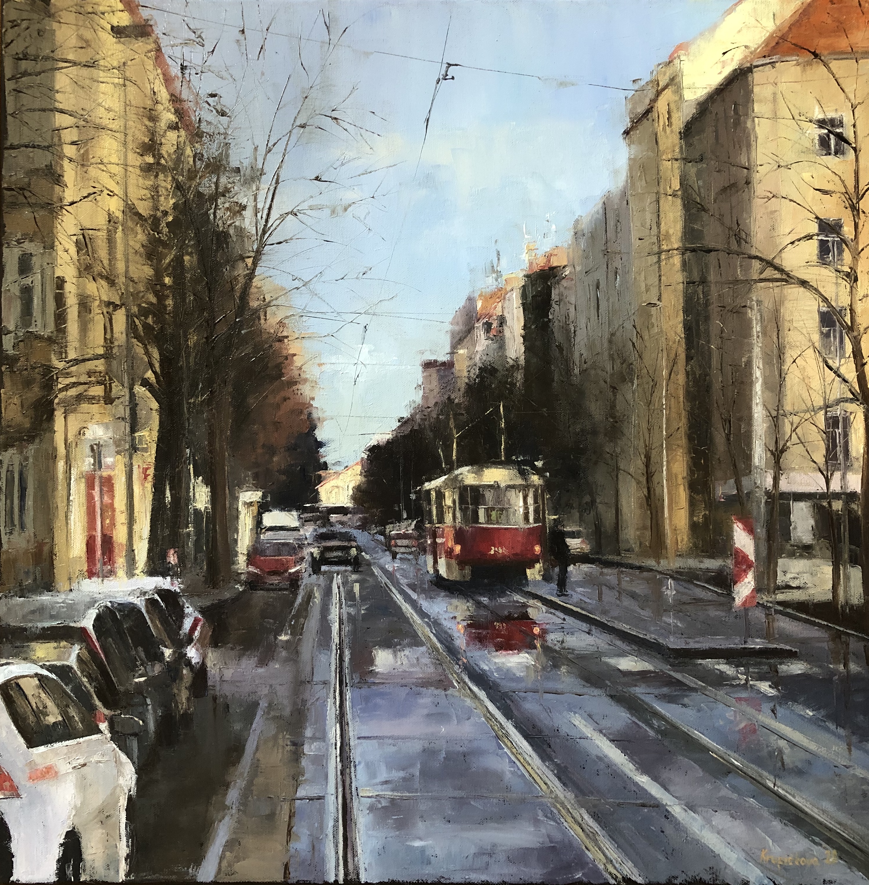 Tramvajová zastávka/ Tram stop 2022 (80 x 80 cm) – video on YouTube