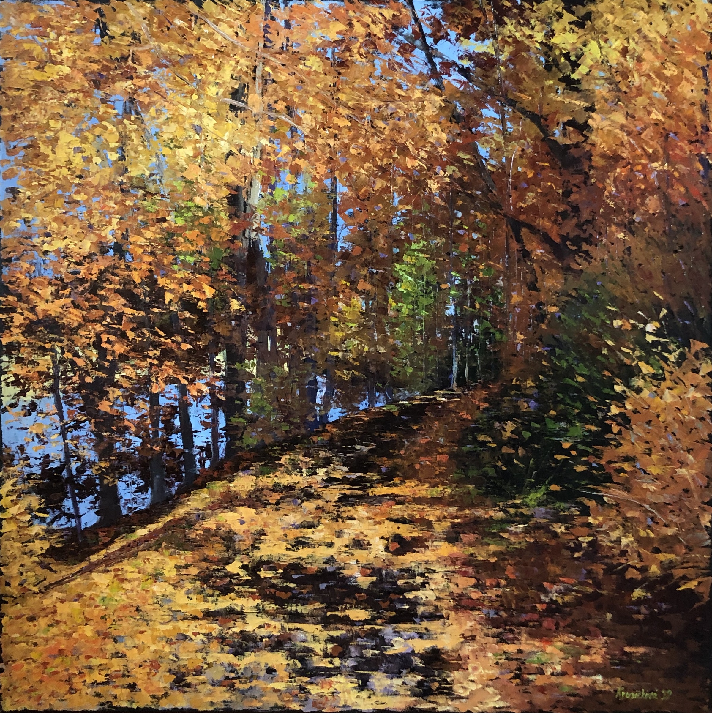 Podzimní cesta/ Autumn path 2022 (80×80 cm) – video on YouTube
