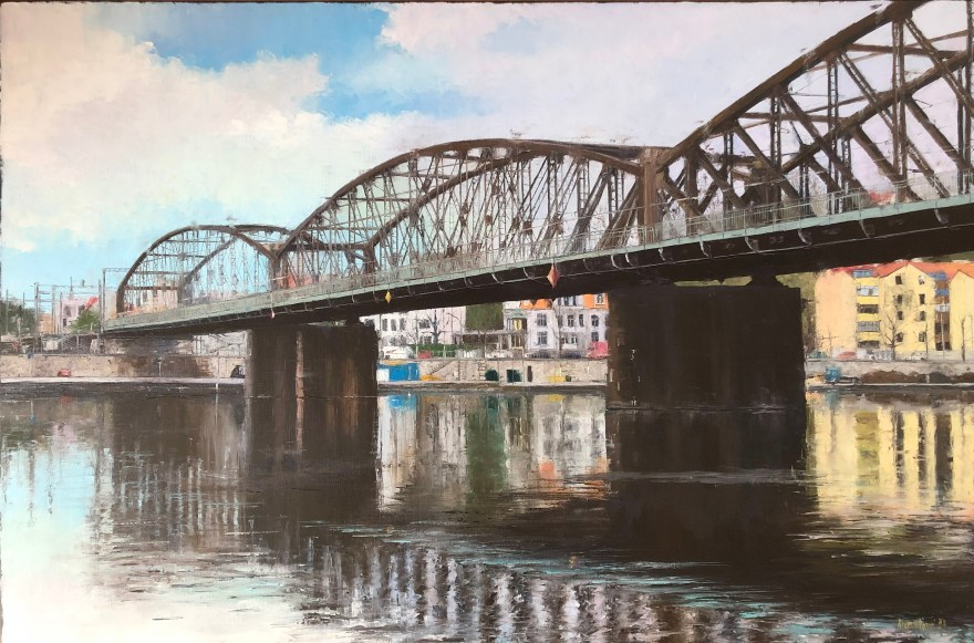 I’m happy to announce that I won one of the RUNNER-UP AWARD in the “8th LANDSCAPE” art competition by TERAVARNA with the painting “Railway bridge in the refrection of the river Vltava” 2023 (80×120 cm).