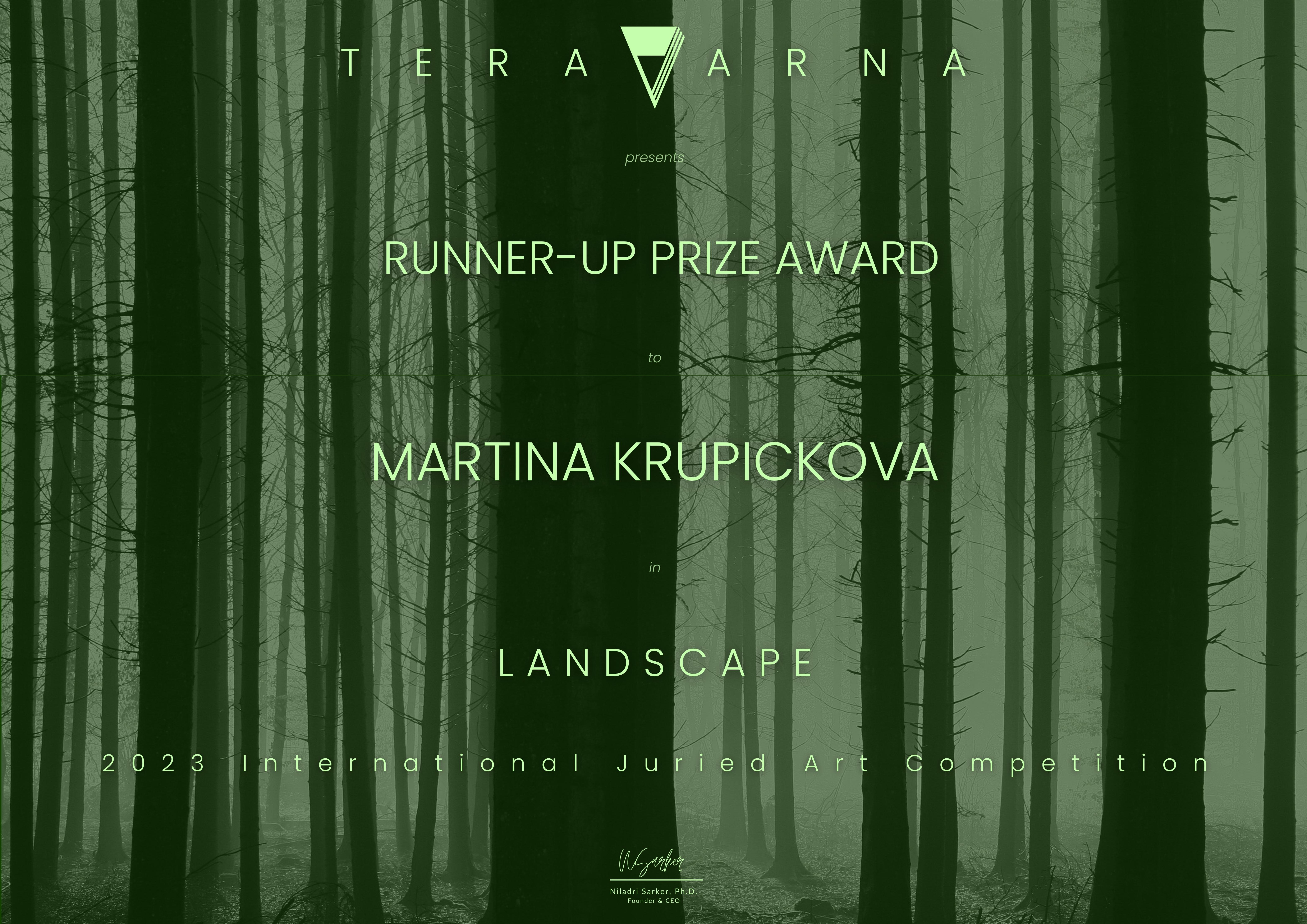 V soutěži “9th LANDSCAPE” od TERAVARNA, kde jsem přihlásila obraz “Olšina” 2022 (80×120 cm), jsem vyhrála z 285 výtvarníků jednu z “ČESTNÝCH VYZNAMENÁNÍ”.