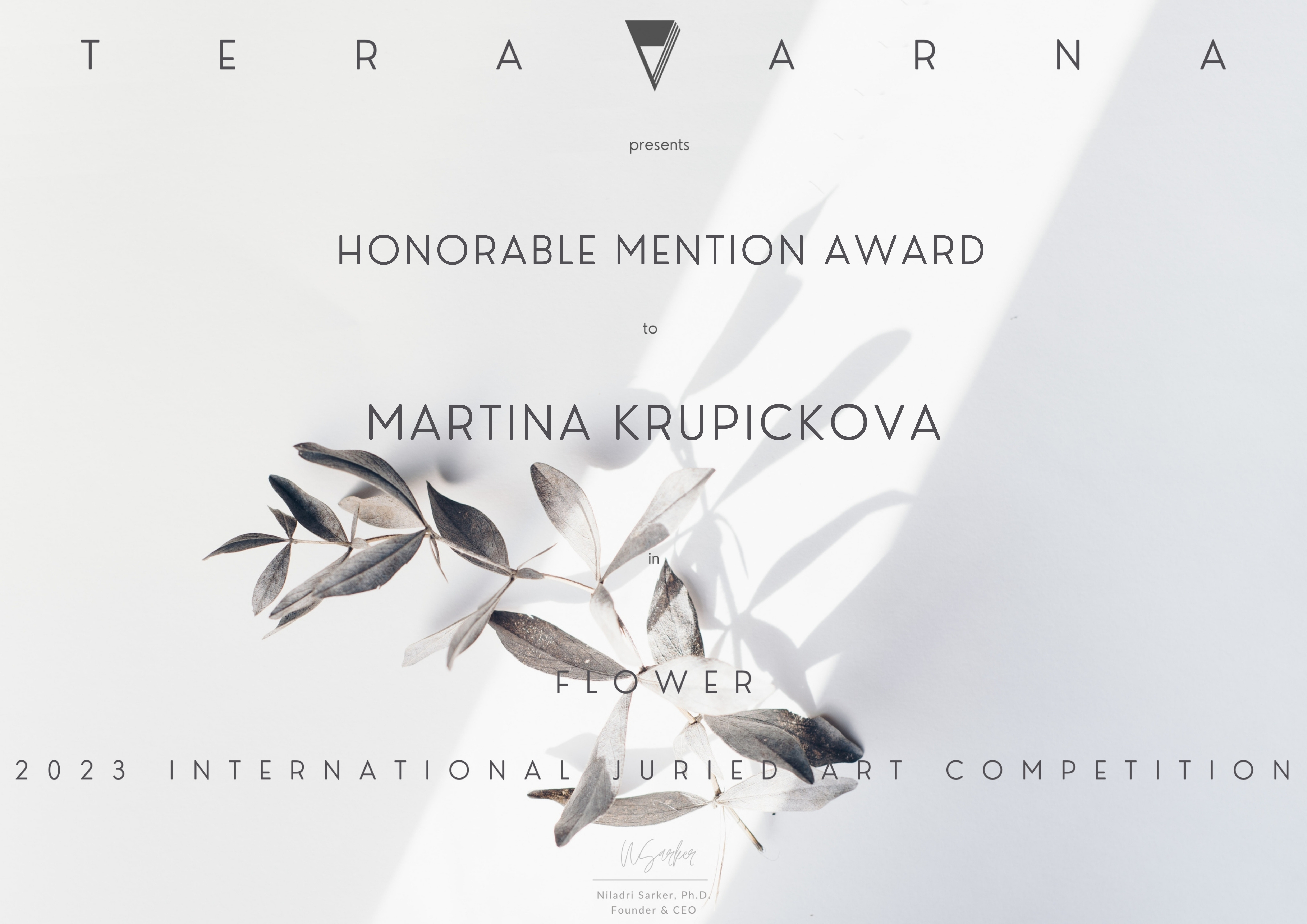V soutěži “7th FLOWER” od TERAVARNA, kde jsem přihlásila obraz “Louka” 2023 (80×80 cm), jsem vyhrála z 230 výtvarníků jednu z “ČESTNÝCH VYZNAMENÁNÍ”.
