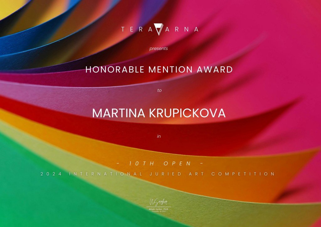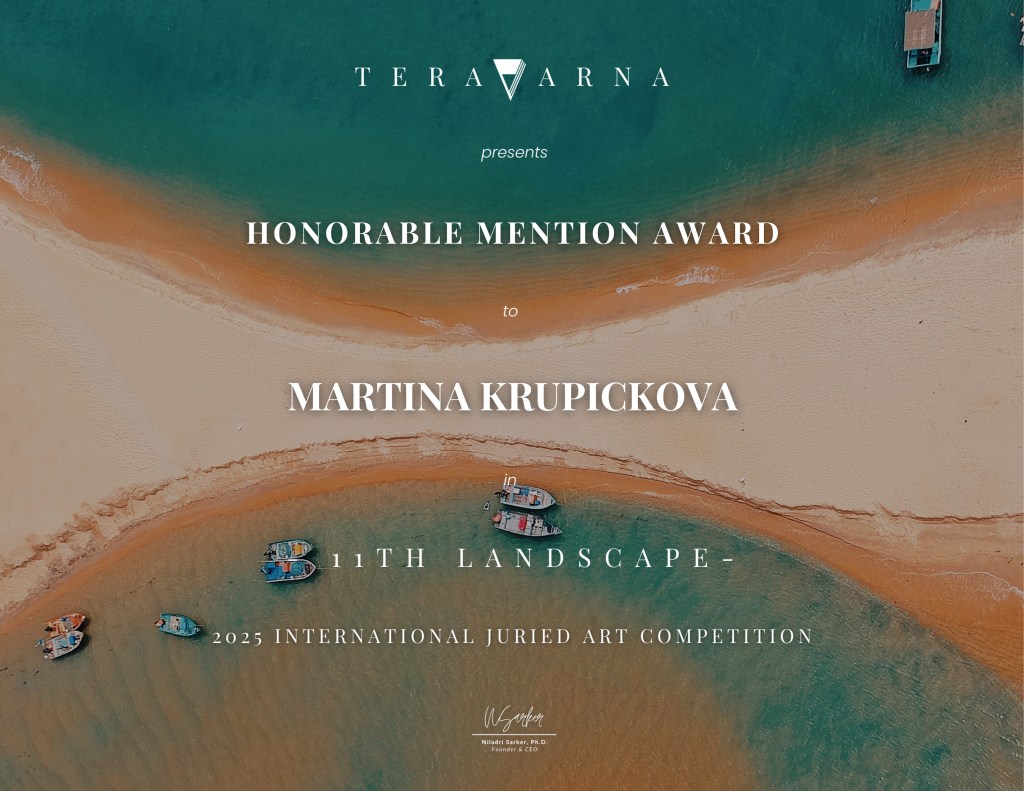 V soutěži “11th LANDSCAPE” od TERAVARNA, kde jsem přihlásila obraz “Emoce” 2025 (70×100 cm), jsem vyhrála z 350 výtvarníků jednu z “ČESTNÝCH VYZNAMENÁNÍ”.