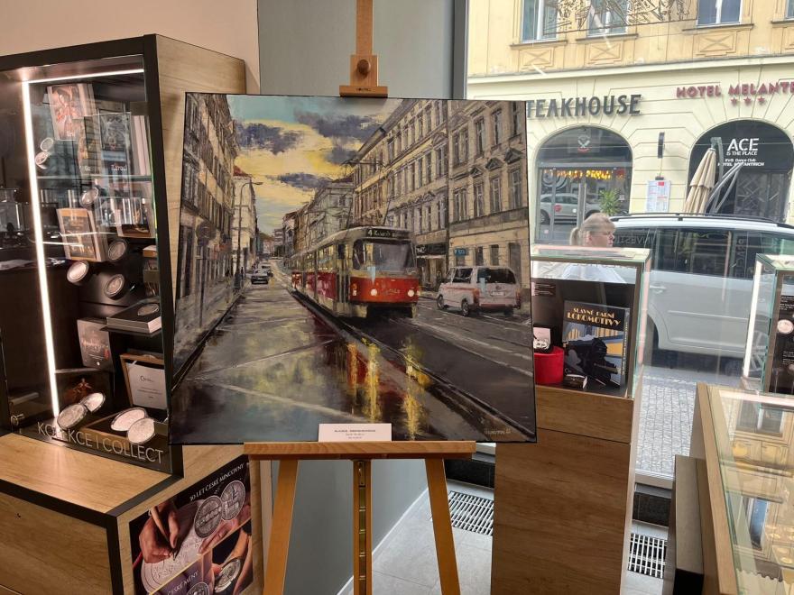 One painting you can see exhibit in the display window of the Art Suppliers shop at Korunní 926, Prague 2.