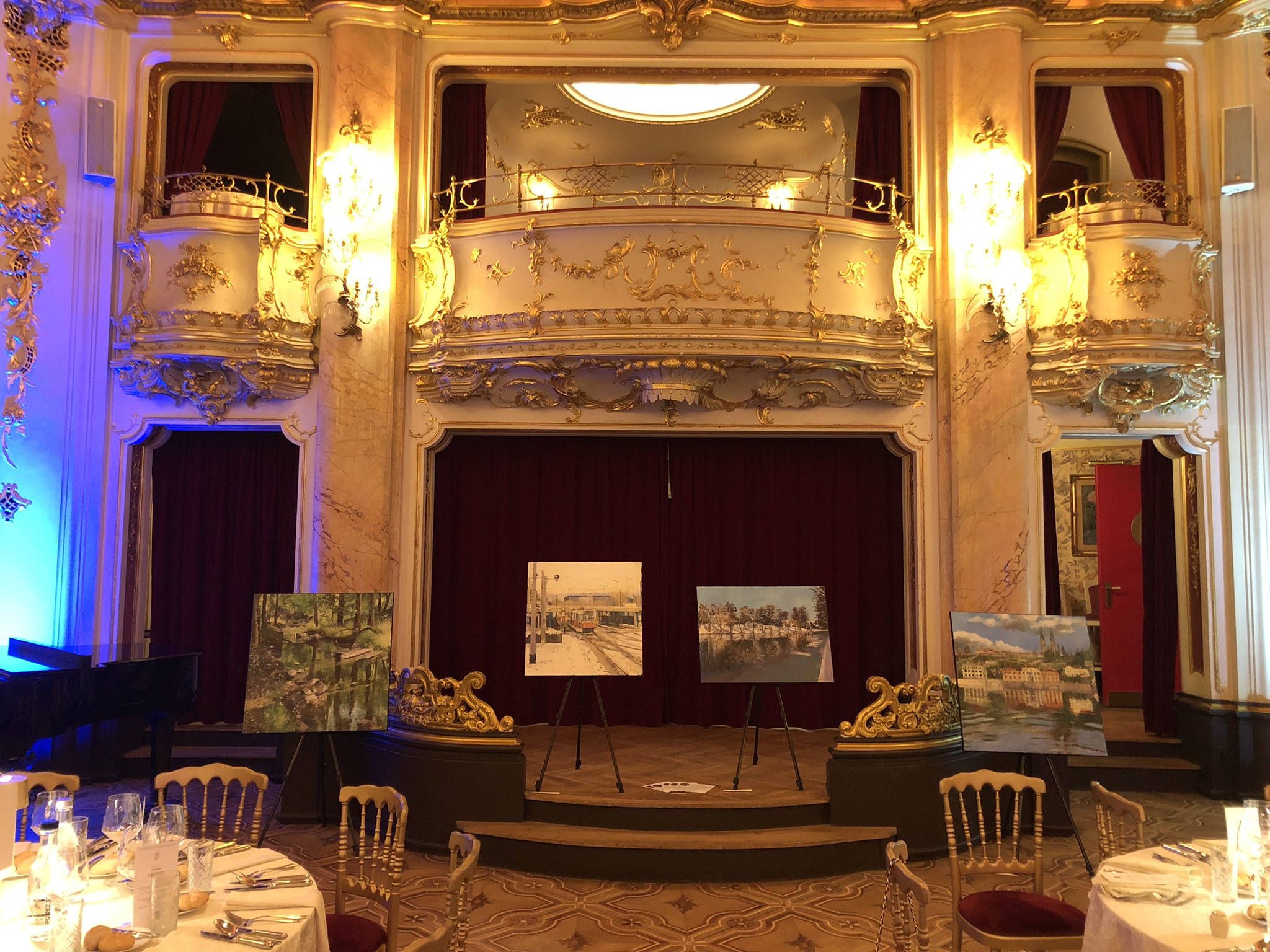 Auction of the picture ‘Creek in Pruhonice’ at the Beneficial Ball in the Boccacio salon of the Grand Hotel Bohemia. Proceeds from the auction were donated to the charity ‘Nadačnímu fondu pro zdraví dětí’ (fund for children’s health).