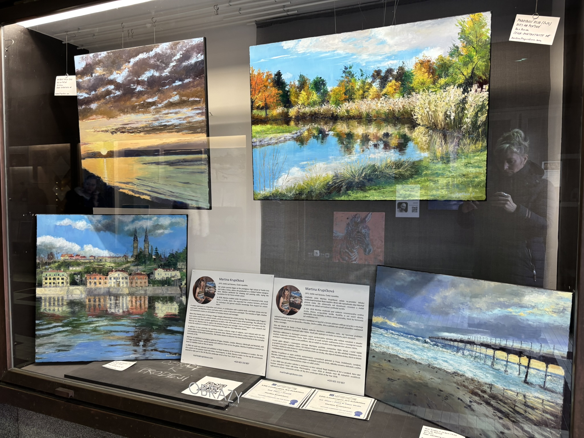 One painting is exhibit in the display window of the Art Suppliers shop at Korunní 926, Prague 2.