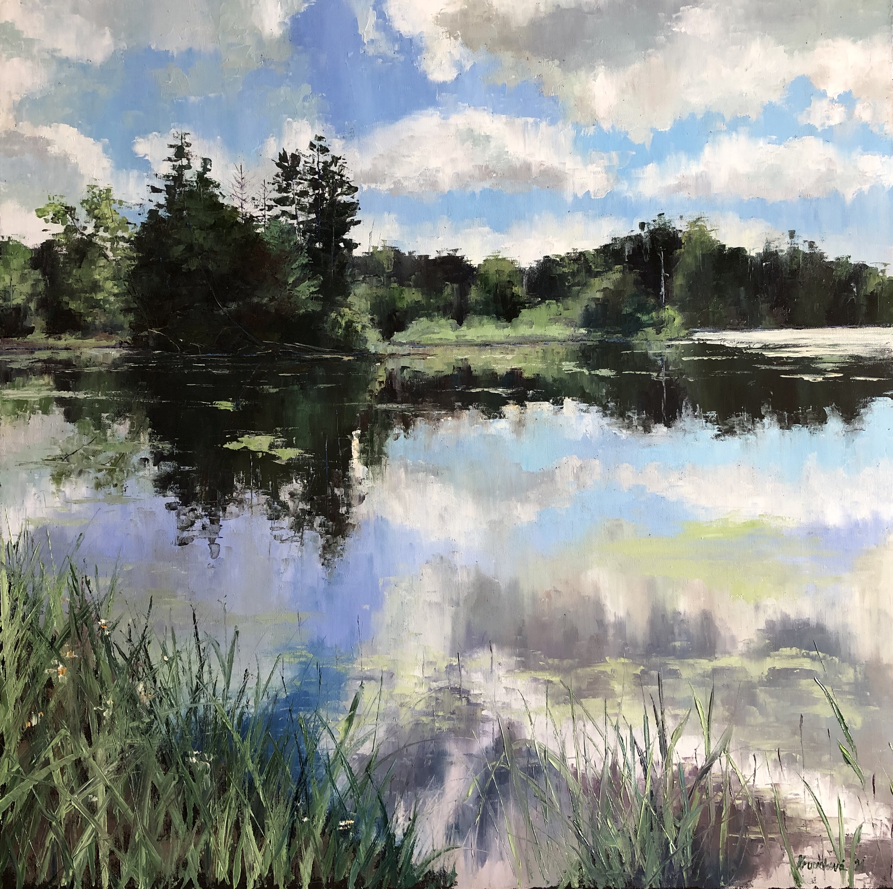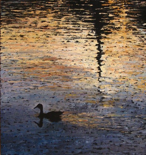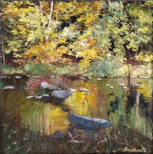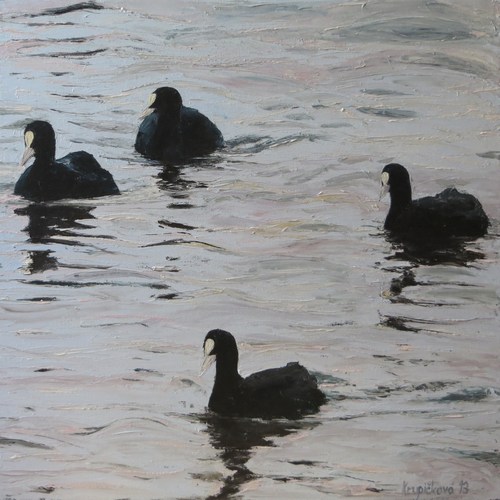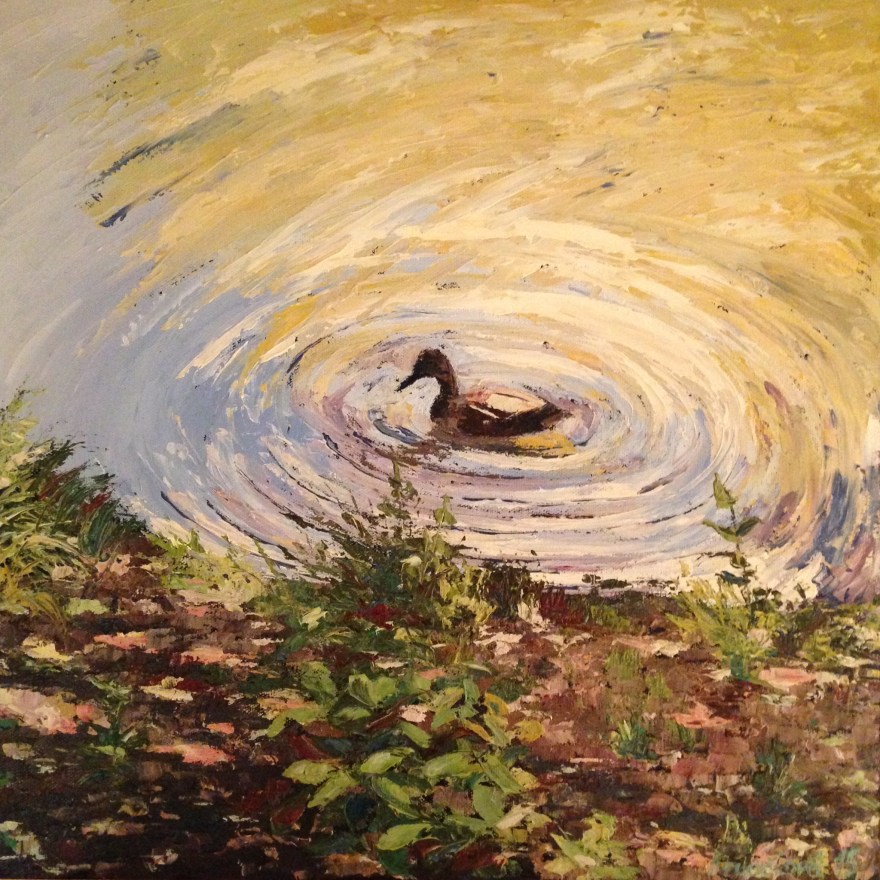 Na vlnách rybníka/ On the waves on a pond 2015 (40 x 40 cm)