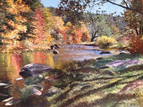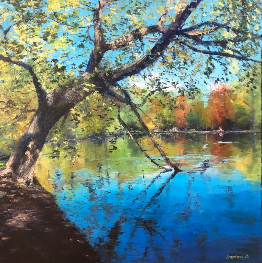 Podzimní symfonie na řece/ Autumn symphony on the river 2023 (70 x 100 cm) – video on You Tube