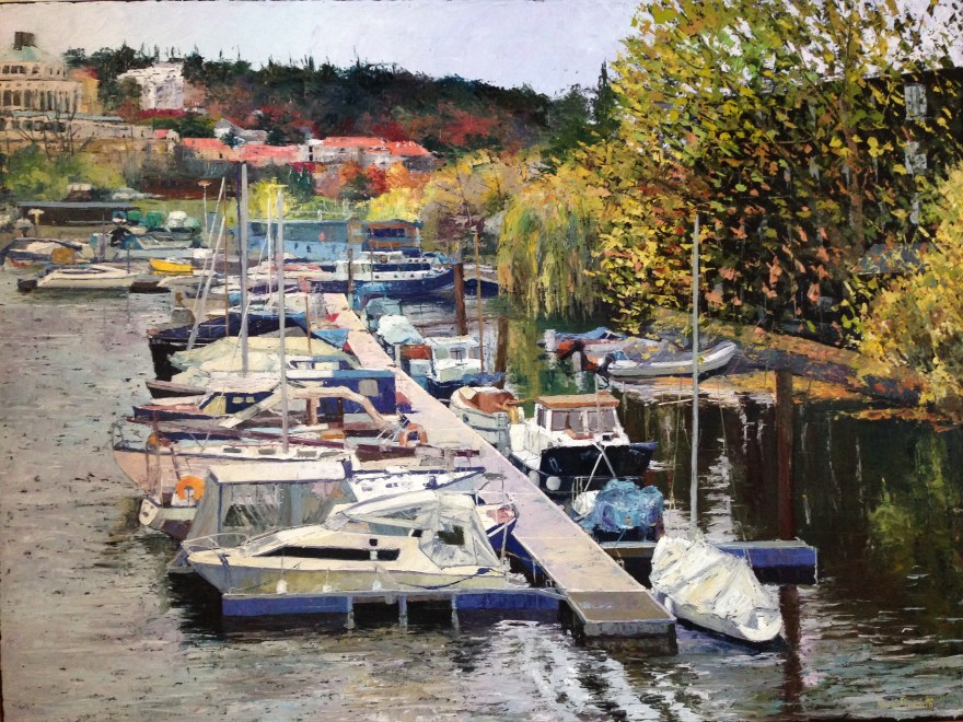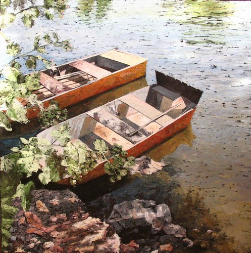 Boats on the river Vltava/ Lodičky na Vltavě 2005 (85×90 cm)