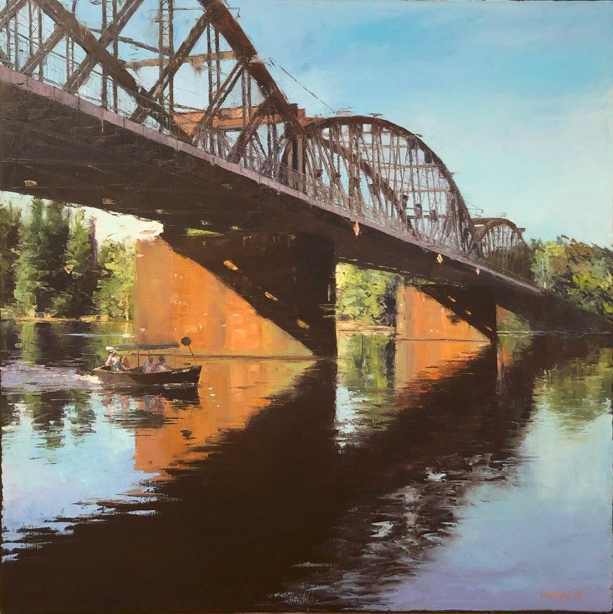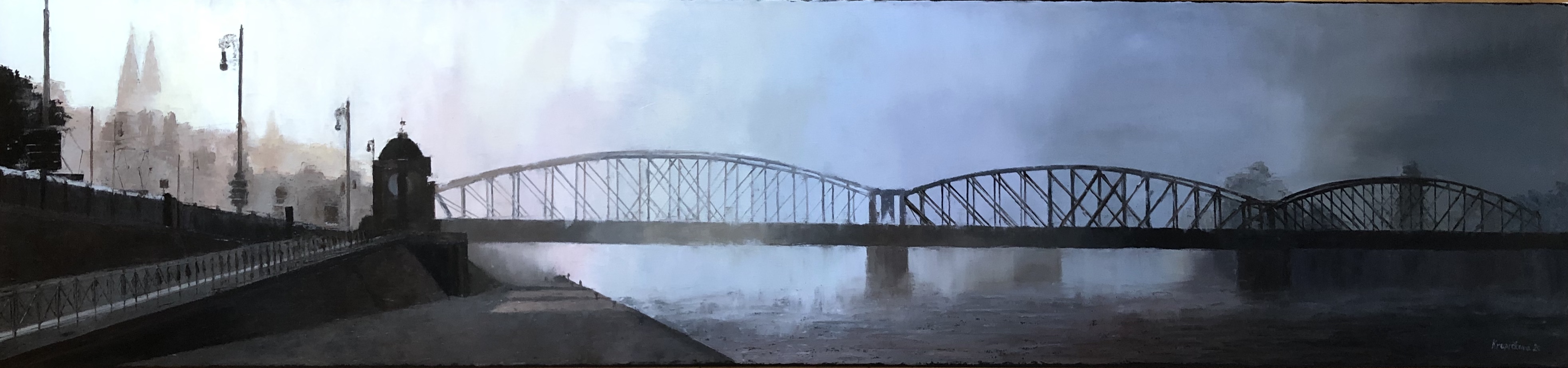 Železniční most v odrazech Vltavy/ Railway bridge in the refrection of the river Vltava 2023 (80 x 120 cm)