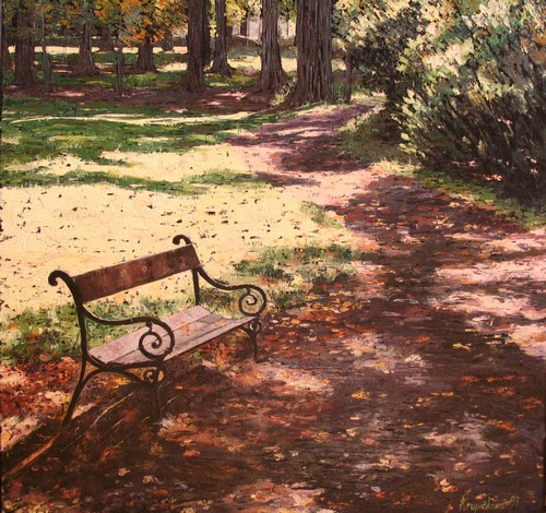 Banch and autumn light/ Lavička a podzimní světlo 2007 (60×60 cm)