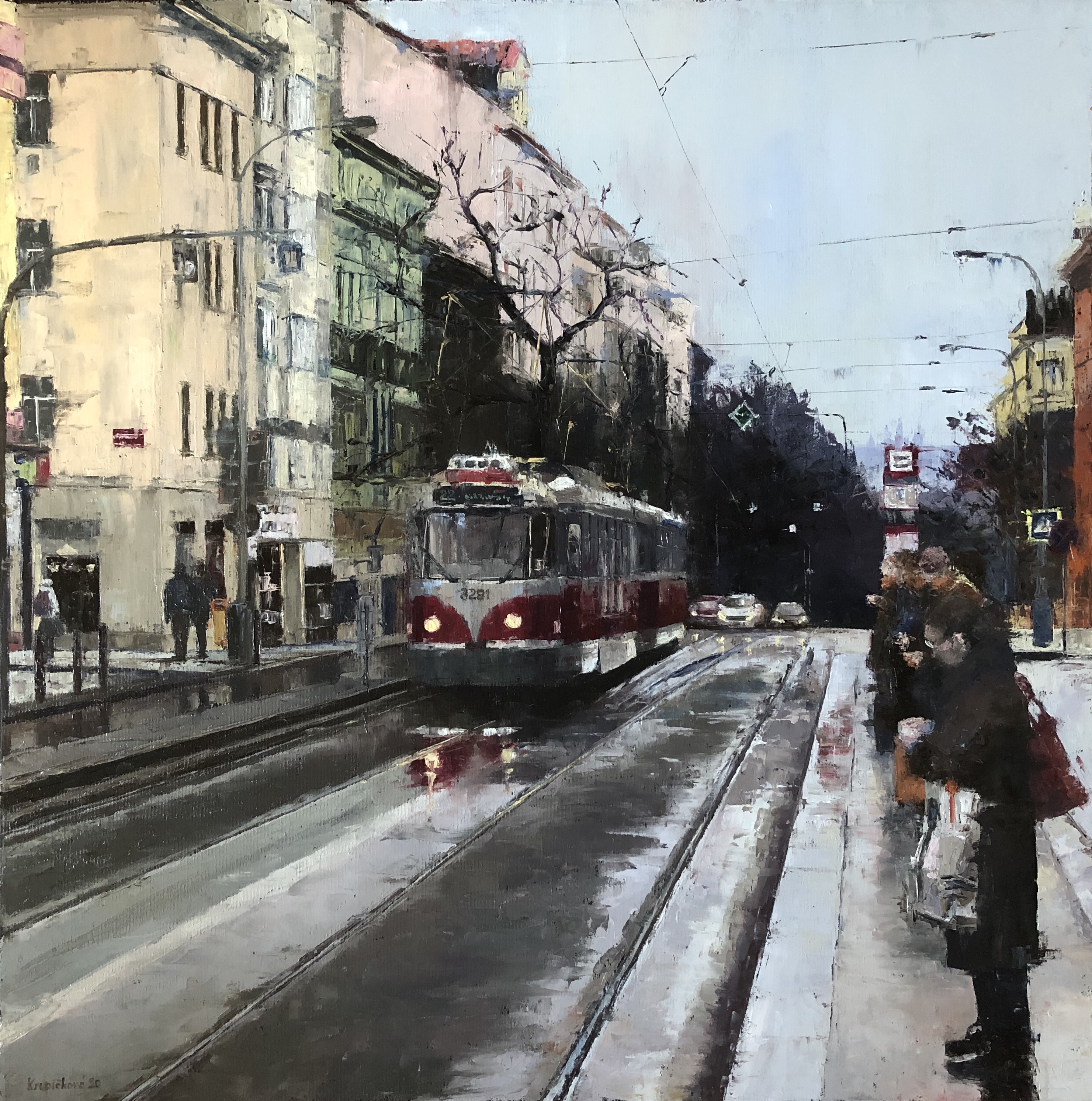 Tramvajová zastávka/ Tram stop 2022 (80 x 80 cm) – video on YouTube