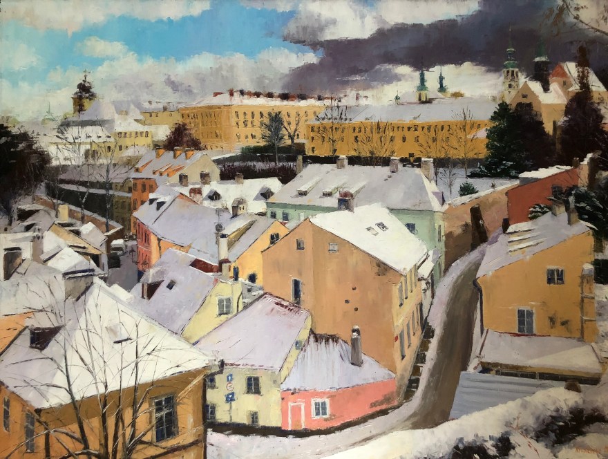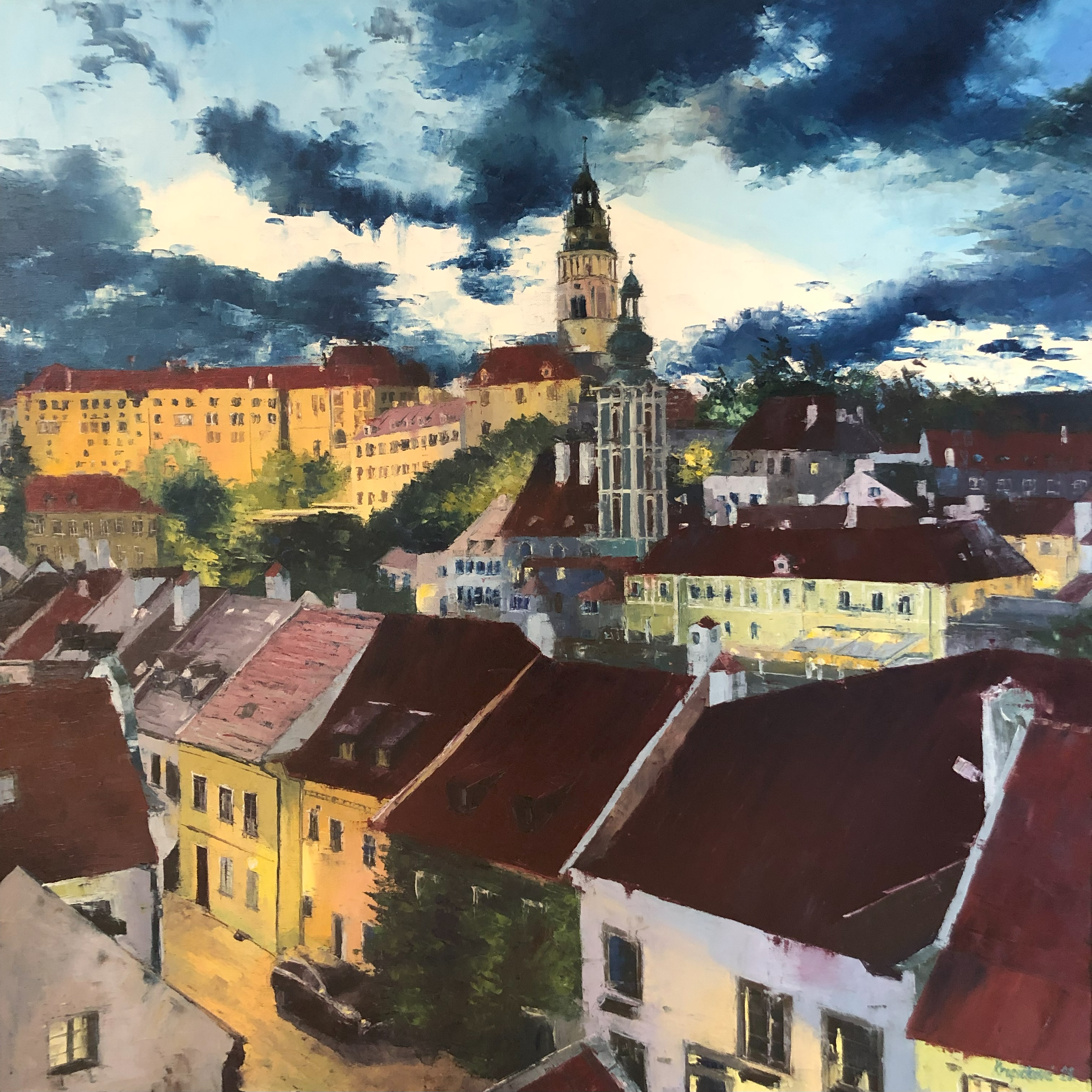 Za soumraku v Českém Krumlově/ At Dusk in Český Krumlově 2023 (80 x 80 cm) – video on YouTube