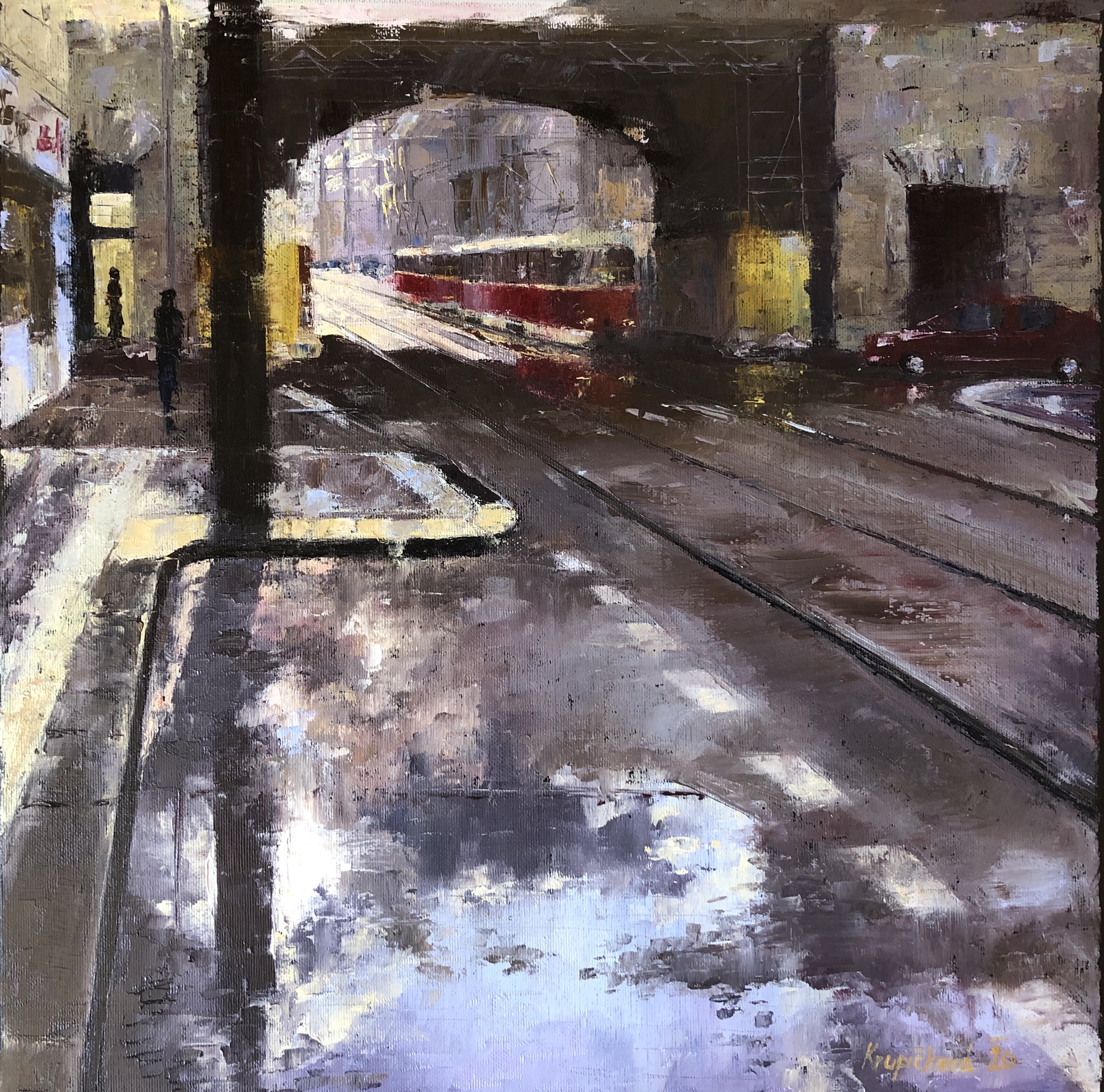 Po bouřce v Karlíně 2020 (40 x 40 cm) – tento obraz se 1.9.2020 vydražil na Žofíně v charitativní aukci pro Klub přátel dětí DD “97” za krásných 45 000 Kč. Jsem ráda, že pomůže dobré věci.