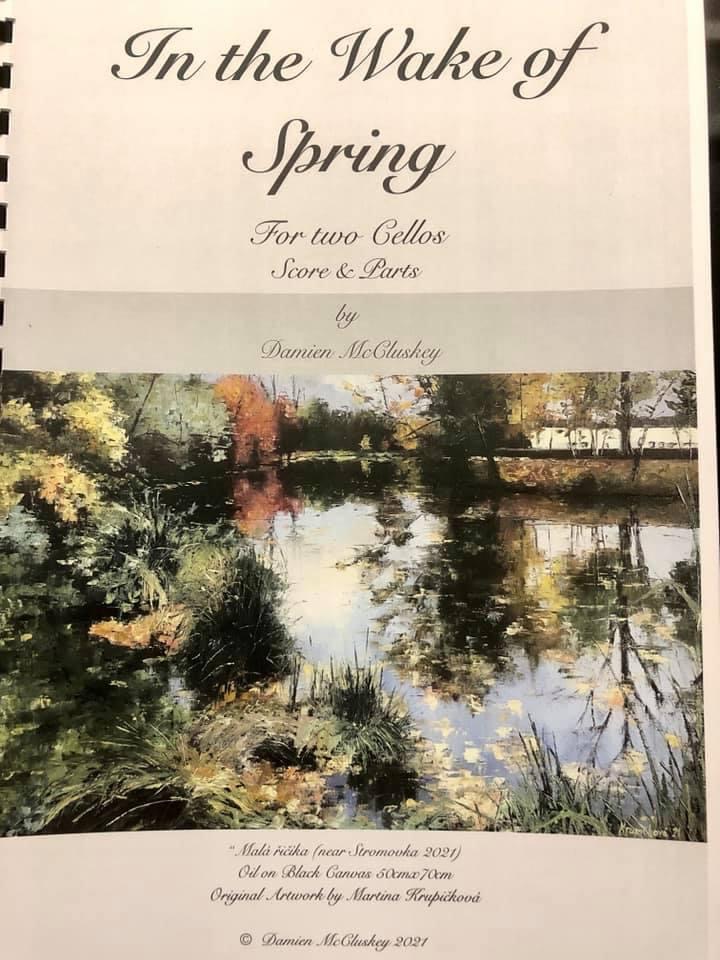 May 2021 – Painting “Malá říčka near Stromovka” is on the cover of great composition “In the Wake of Spring” for two cellos by talented yang composure Damien McCluskey.