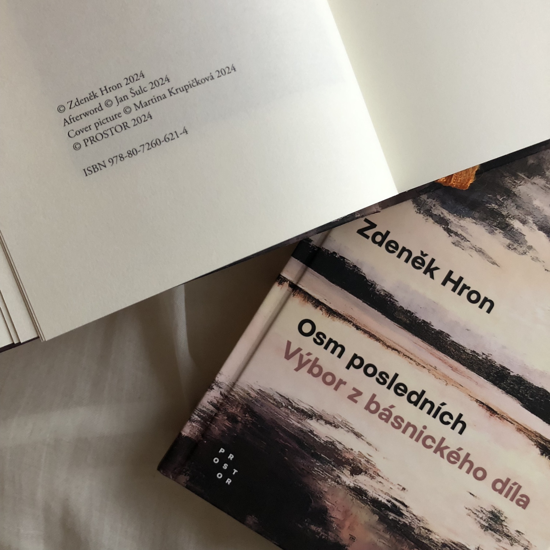 October 2024 – The painting “Clouds over Lednicí” was chosen by the owner of the publishing house Prostor – Aleš Lederer for the cover of the book: “The Last Eight”, which presents a set of the eight latest collections of the poet, essayist and translator Zdeněk Hron. Information on the sale of the book can be found here